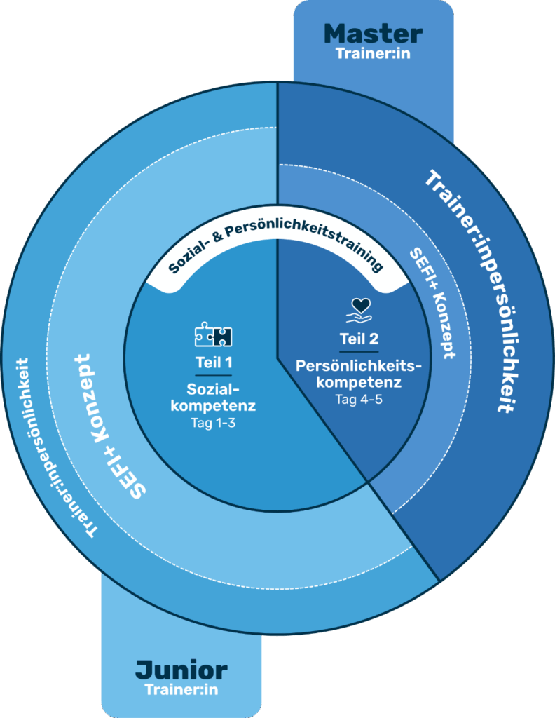Wir katapultieren dich in die Rolle einer souveränen Trainer:in. Du lernst, die ersten drei Tage (Teil 1) unseres Sozial- & Persönlichkeitstrainings mit Fokus auf Sozialkompetenz eigenständig, sicher und wirkungsvoll zu leiten. Du bekommst kein trockenes Theoriewissen, sondern: